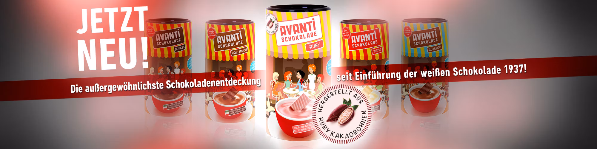 Entdecken Sie die Welt handverlesener AVANTI Kaffees in fünf Sorten und unsere stilvollen Espresso-, Doppio-, Cappuccino- oder Milchkaffee-Tassen. Probieren Sie auch unsere AVANTI Trinkschokoladen, die wir aus unserem Geschmackslabor entlassen konnten. Und unsere robusten und ansprechenden Espresso- und Latte-Macchiato-Gläser finden Sie ebenfalls hier. Und nun… viel Freude!